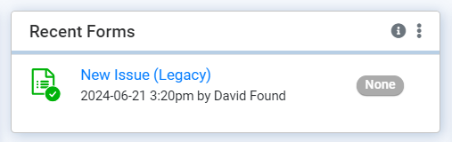 Use the Recent Forms dashboard widget to view forms you’ve created that have been activated by a workflow in the last 30 days.