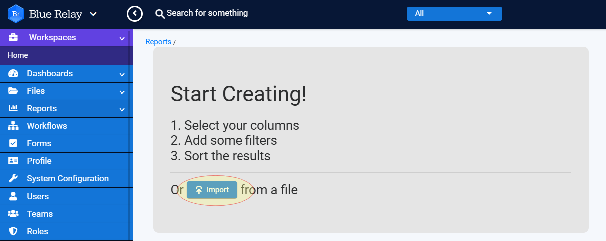 You can import a report configuration that was previously exported from Blue Relay as a JSON file.